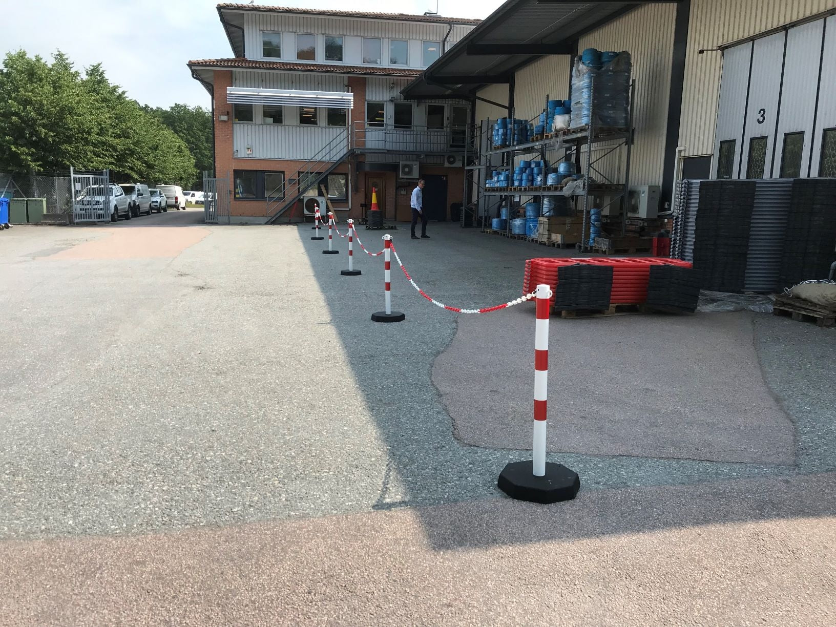 - Veelzijdig paal- en kettingbarrièresysteem is eenvoudig op te zetten terwijl het rood/wit kleurenschema de aandacht trekt van zowel voetgangers als automobilisten
