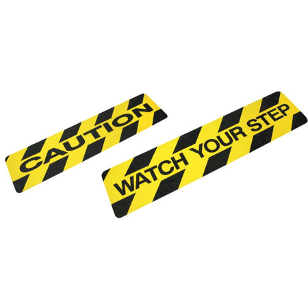 De VOORZICHTIG / KIJK UIT VOOR DE TREDE anti-slip treden zijn ontworpen om de voetveiligheid te verbeteren terwijl ze maximale zichtbaarheid in gevaarlijke gebieden garanderen. Met een heldere gele basis met vette zwarte tekst, bieden deze treden hoog contrast om voetgangers effectief te waarschuwen voor potentiële risico's.