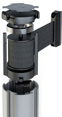Het langzaam intrekkende bandmechanisme van de Beltrac beschikt over geavanceerde visco-rotatie demping om een gecontroleerde intrekking van de band keer op keer mogelijk te maken.