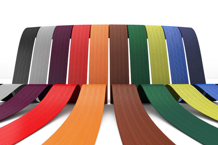 Intense, levendige riemkleuren zullen helpen om uw merk te versterken. We kunnen u 15 verschillende standaardkleuren aanbieden, evenals 2 standaardboodschappen op de riemen. De riemen zijn gemaakt van polyester dat strak geweven is, wat optimaal is voor zwaar gebruik.