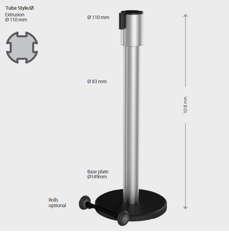 Beltrac Storetrac XXL is een zeer solide mobiele afzetting die wordt geleverd met een 10 meter uittrekbare band. Zeer geschikt voor industrieën en zowel voor binnen- als buitengebruik. De afzetpaal is gemaakt van aluminium en de 10 meter uittrekbare band is voorzien van een centrifugaal remsysteem dat voorkomt dat de band met hoge snelheid terug in de behuizing rolt als de band plotseling zou loskomen. Het is zelfs mogelijk om een extra uittrekbare band aan de bestaande 10 meter band te monteren. Neem alstublieft contact met ons op voor meer informatie. Naast de uittrekbare band is de Beltrac Storetrac Mono XXL ook uitgerust met een bevestiging zodat u de band van een andere Beltrac-barrière eraan kunt bevestigen.