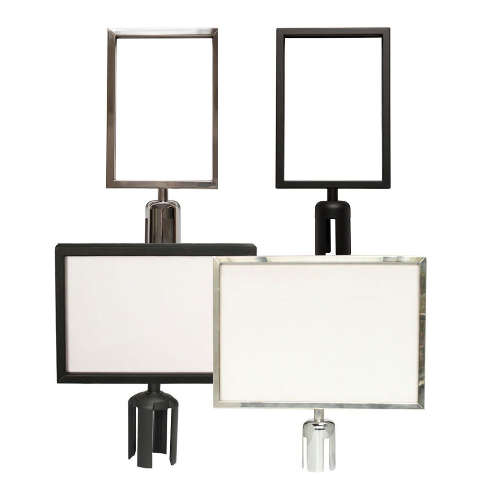 Frames voor intrekbare bandafzettingen zijn uitgerust met een adapter die over de bovenkant van de paal schuift voor een stevige pasvorm. Frames voor touwafzettingen zijn uitgerust met een schroefdraad en worden direct in de getapte bovenkant van de afzetting geschroefd. Adapters en pennen zijn beschikbaar voor alle grote merken afzettingen.