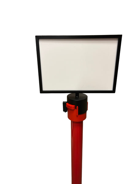Deze A4 verticale bordenhouder is speciaal ontworpen om te passen op de Flexibarrier Outdoor 1050 (10.6m) en Safetypro 1050 afzetpalen met trekband.