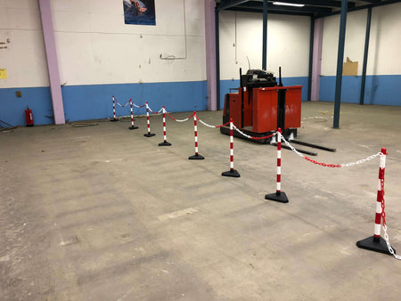 Deze Flexibarrier Basic Post & Chain Afzetting 90cm is gemakkelijk op te merken, robuust en eindeloos praktisch. Deze veelzijdige kettingpaalafzetting kan worden gebruikt om een tijdelijke afzetting te creëren in geval van gevaar, of eenvoudigweg om voetgangers te controleren die in drukke locaties zoals winkelcentra, hotels, ziekenhuizen, parkeerterreinen, sportvelden, enzovoort in de rij staan. Gemaakt van stevig en slijtvast laagdichtheidspolyethyleen, staat deze kunststof kettingpaal 90cm hoog met een diameter van 4cm. Een dop met 4 oogjes aan de bovenkant maakt het mogelijk om de kunststof ketting aan de paal te bevestigen, zodat u een effectief afzetsysteem kunt creëren. Deze afzetpaal wordt geleverd met een zwaar verzwaarde driehoekige betonnen basis, waarvan elke zijde 29cm meet, gevuld met beton als ballast om een stevige stand te bieden bij sterke wind en regen.