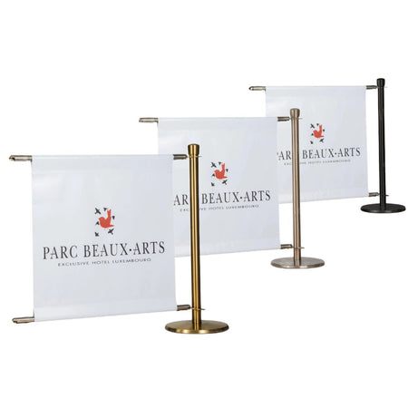 Breid uw bestaande caféscheidingssysteem uit met de Flexibarrier Extension Kit – 1000mm, met een op maat gemaakte banner en uw keuze uit elegante afwerkingen voor cafépalen. Perfect voor het uitbreiden van uw merkgebonden buitenruimte met een nette, gecoördineerde uitstraling.