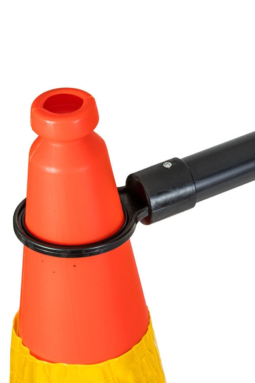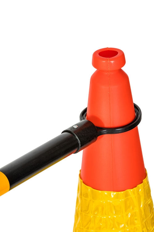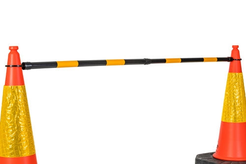 5-pack Flexibarrier telescopische verkeerskegelstangen die in lengte verstelbaar zijn van 130 cm tot 215 cm. Verbind eenvoudig de ring aan elk uiteinde van de stang met uw verkeerskegel en creëer binnen enkele seconden een barrière.