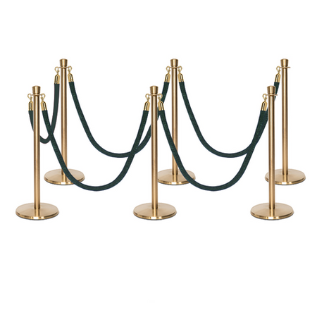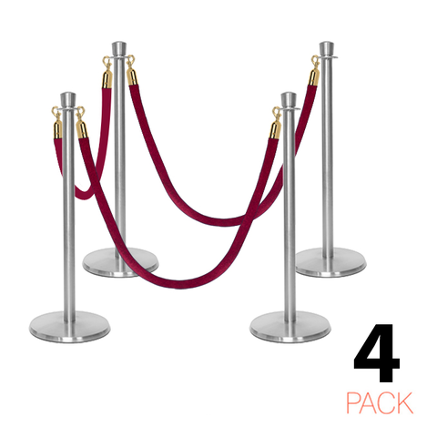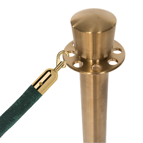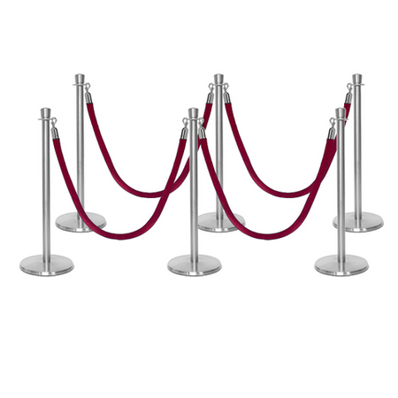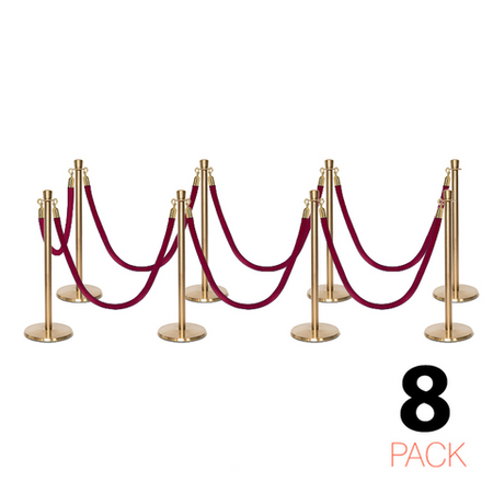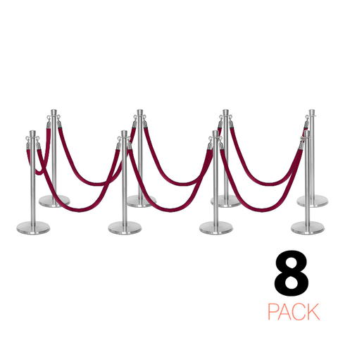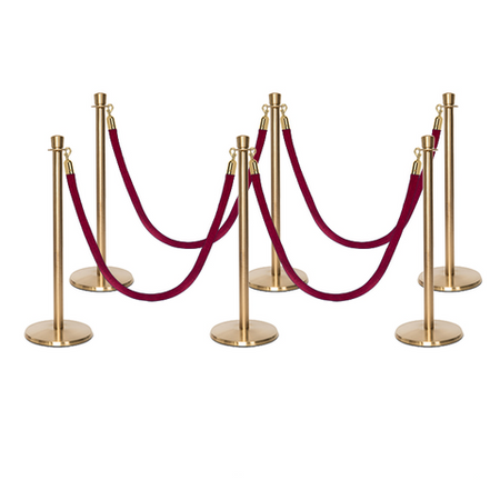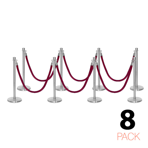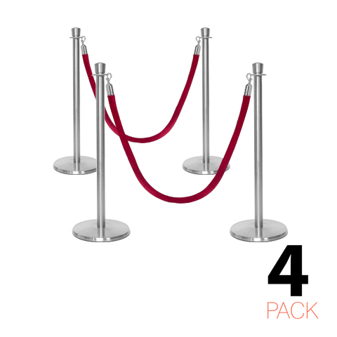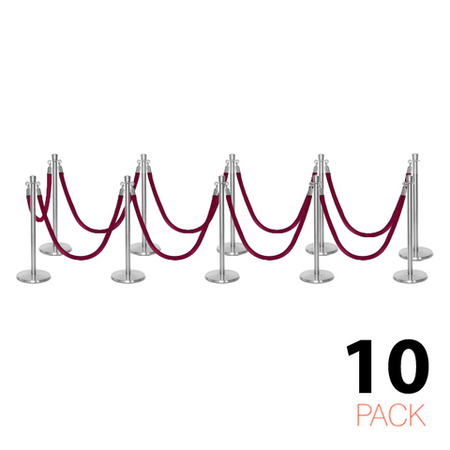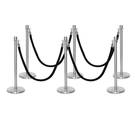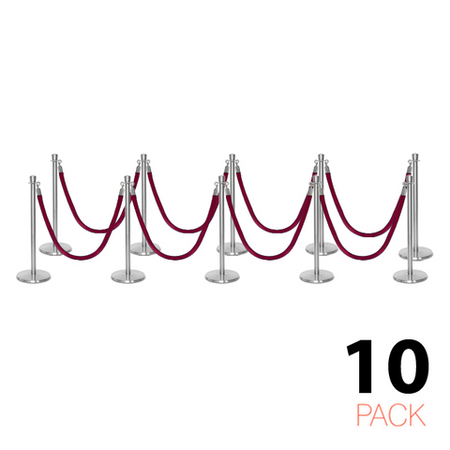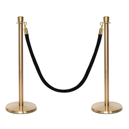 Deze stijlvolle en luxueuze paal en koord afzetting set is overal te zien, van hoog aangeschreven restaurants tot receptiegebieden. Ideaal voor evenementenlocaties, musea, galerieën en buitenbars en -restaurants, deze afzettingspaal maakt ordelijk wachten bij evenementen en locaties mogelijk, terwijl het een professionele uitstraling biedt aan de bezoekers van uw etablissement. De premium-kwaliteit wachtrij afzettingspalen in aantrekkelijke afwerking tonen een verfijnde, elegante uitstraling met hun kroon top ornament en hebben een solide roestvrijstalen constructie. Met een ronde, laag-profiel maar zware basis draagt bij aan de stabiliteit en veiligheid in alle omgevingen. Het wordt geleverd met een zacht, weelderig fluwelen koord dat snel aan paalstijlen kan worden bevestigd door middel van veerhaken aan elk uiteinde.