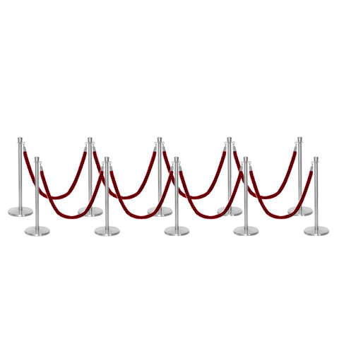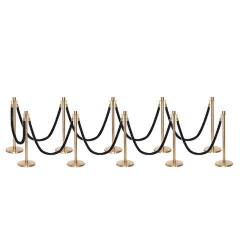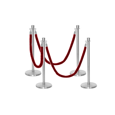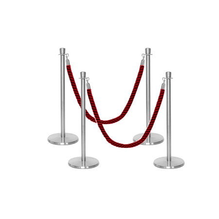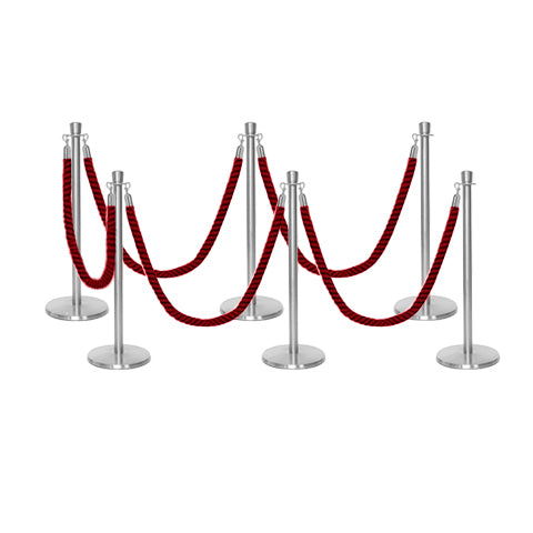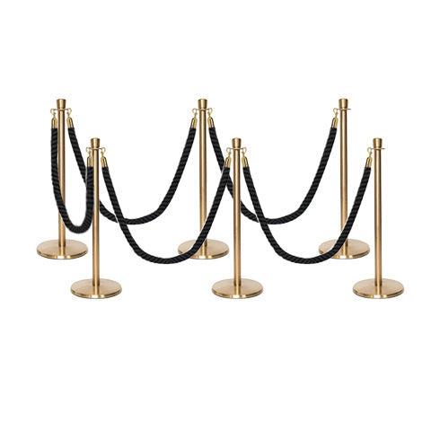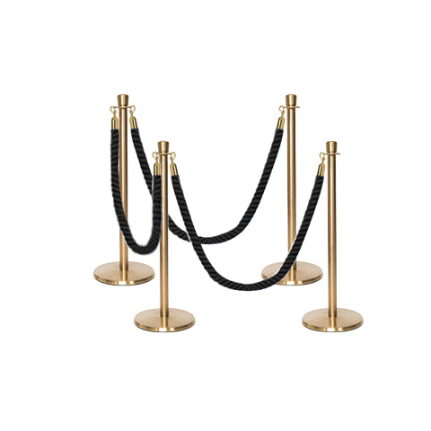 Geef uw locatie een professionele en esthetische uitstraling met deze veelzijdige afzetting met paal en koord, voorzien van gedraaide koorden. De Premium kroon top afzetpalen voor koord hebben een laag basisontwerp dat struikelen voorkomt en een perfecte oplossing biedt voor wachtrijen buiten uw club of restaurant. De palen hebben een robuuste stalen constructie met een gietijzeren basis. De hoogwaardige afzetkoorden zijn gemaakt van polypropyleen, worden geleverd met snap-ends aan beide zijden en zijn klaar voor gebruik. De Premium set is verkrijgbaar in een breed scala aan pakketopties in verschillende aantallen en kleuren van palen en gedraaide koorden. Het is volledig weerbestendig en zeer geschikt voor buitengebruik.