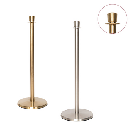 Flexibarrier Post & Rope Afzetting -Premium Crown Top- in satijnzilver of messing afwerking met een gewicht van 11,5kg (!). Flexibarrier Premium is veilig vanwege de lage basis die voorkomt dat uw bezoekers struikelen of vallen over de afzetting. Perfecte oplossing voor het creëren van een wachtrij buiten uw club of restaurant.