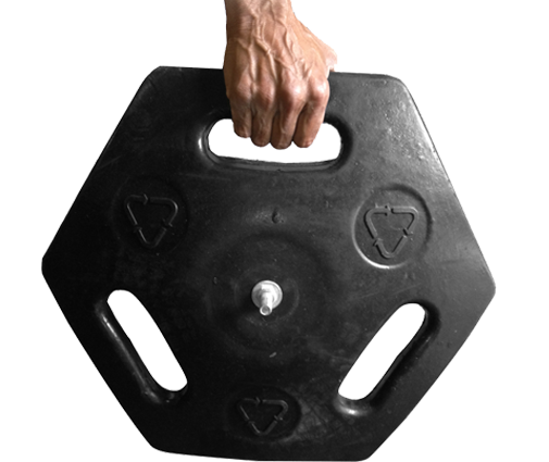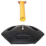De roestvrijstalen paal heeft een constructie uit twee delen, waardoor het onderste bandmechanisme eenvoudig ter plaatse kan worden vervangen en van de basis kan worden losgeschroefd, zodat de eenheid plat kan worden opgeborgen wanneer deze niet in gebruik is. De gerecyclede rubberen basis heeft handige draaggrepen en is stevig genoeg om overheen te rijden!