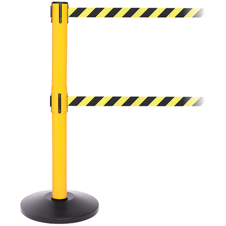 FlexiBarrier Afzetpaal met trekband --SafetyPlus Dubbel 3,4m-- (2x3,4m band)