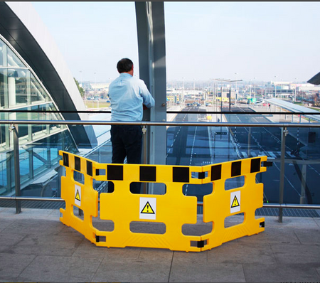HandiGard is een hoogwaardig modulair barrière systeem dat wordt geleverd in sets van 2, 3 en 4 panelen. Gemaakt van duurzaam polyethyleen, is deze lichtgewicht veiligheidsbarrière ideaal voor zowel binnen- als buitengebruik om tijdelijk de toegang van voetgangers tot gevaarlijke gebieden te voorkomen. Elk paneel wordt standaard geleverd met permanente gegoten grafische afbeeldingen met waarschuwingssymbool en geel/zwarte reflecterende strips. De gladde afwerking van het paneel maakt schoonmaken eenvoudig. Meerdere veiligheidsbarrièrepanelen kunnen aan elkaar worden gekoppeld met behulp van meegeleverde snap-on scharnieren. Gekoppelde modulaire panelen helpen bij het creëren van barrières van elke grootte rond gevaren. Het beschikt over een handig opvouwbaar ontwerp voor gemakkelijke manoeuvreerbaarheid en opslag wanneer niet in gebruik. Elke paneelgrootte: 800mm (H) x 1000mm (B) x 30mm (D).
