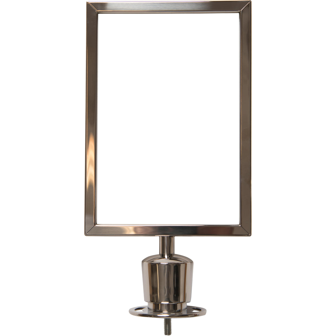 Elegante A4-bordhouder die op alle Flexibarrier touwbarrières past. Wordt geleverd in gepolijst chroom en messing.