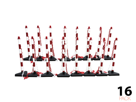Deze Flexibarrier Economy paal & ketting afzetting set fungeert als een ongelooflijk veelzijdig tijdelijk afzetsysteem, ideaal voor een breed scala aan situaties en omstandigheden. Of u nu een afzetting set nodig heeft voor menigtebeheer, parkeerterreinen, sportvelden of het afzetten van gevaarlijke gebieden, deze kunststof paal ketting set is een slimme investering. De eenvoudig te monteren afzetting set bevat (16) kunststof palen en 25 meter ketting. De palen en ketting zijn gemaakt van stevig polyethyleen kunststof en worden geleverd met een driehoekige met beton gevulde basis om ze stevig rechtop te houden, zelfs bij winderige omstandigheden. Verkrijgbaar in goed zichtbare rood/wit gestreepte ontwerpen, is deze paal en ketting set gemakkelijk op te merken en kan worden gebruikt in een reeks commerciële toepassingen, zowel binnen als buiten.