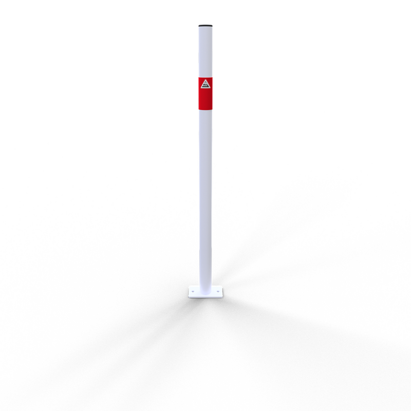 - Stalen buispaal beschikbaar in alleen thermisch verzinkte afwerking of thermisch verzinkte afwerking met witte of gele poedercoating met goed zichtbare rood/zwarte reflecterende strepen