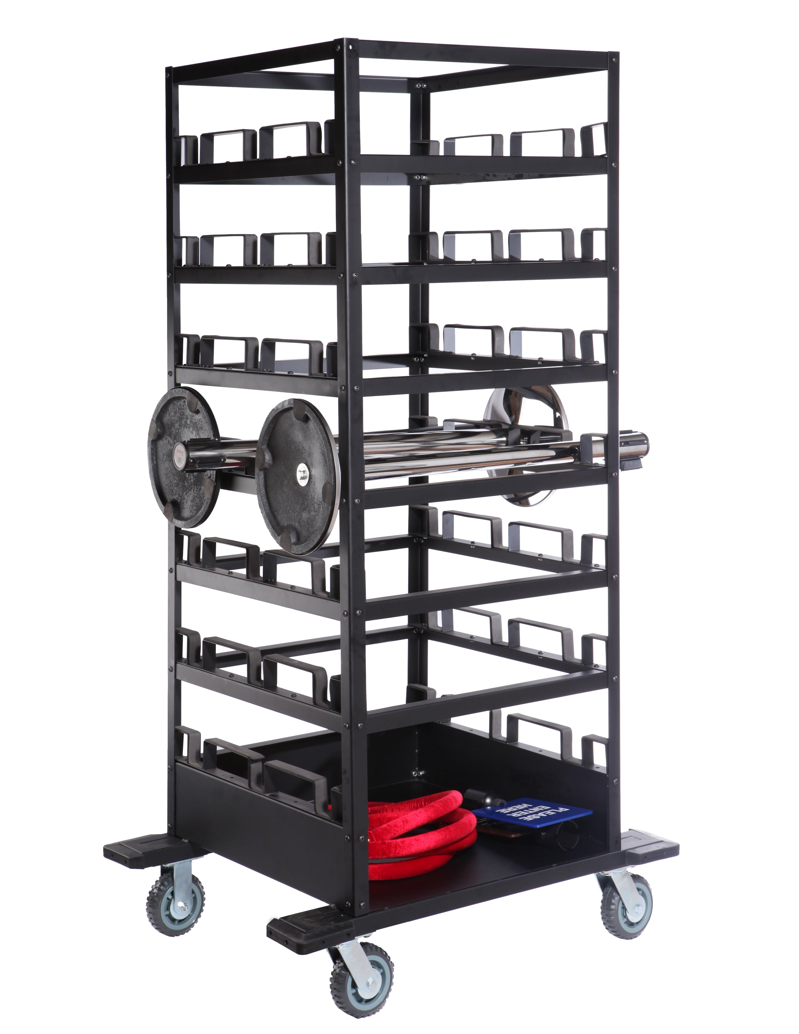 - Opslagwagen ontworpen om 18 afzetpalen te bevatten
