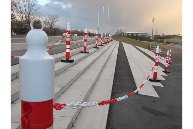 - 1200mm paalkettingbarrière met Ø 110mm wordt geleverd met een ronde, verzwaarde voet voor verbeterde stabiliteit op drukke of winderige locaties