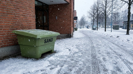 Onze kleinste zoutkist met een capaciteit van 65L voor het opslaan van strooizout of grit. De kist kan gestapeld worden en is voorzien van 10 cm hoge poten, waardoor hij gemakkelijk te verplaatsen is met een vorkheftruck.